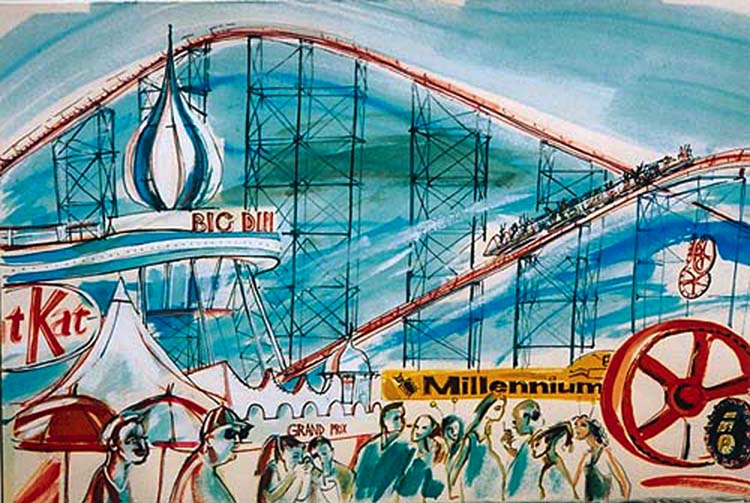 “Early in 2000 I received the invitation to become Artist in Residence at Blackpool Pleasure Beach. The brief was to depict everyday life in front of and behind the scenes.”