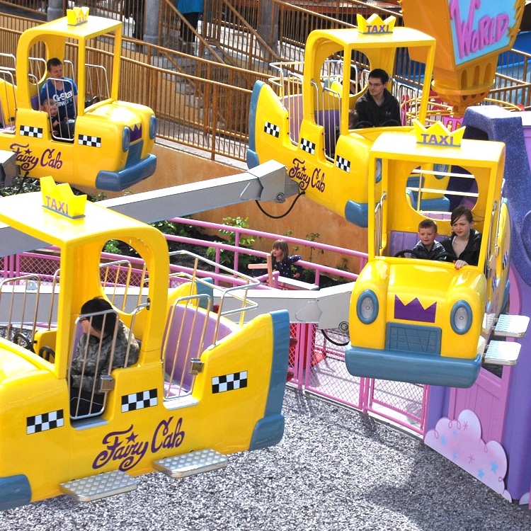 Taking its theme from the Nickelodeon franchise The Fairly Odd Parents, the ride features nine bright yellow Fairy Taxis that riders can control, causing their cab to raise and lower.
