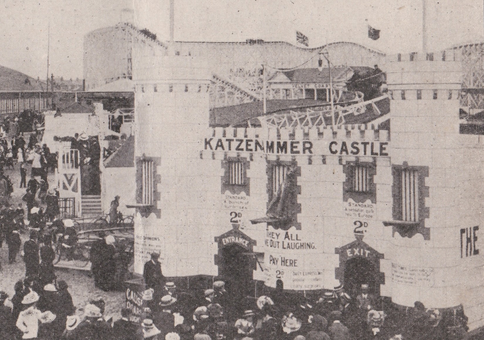 The Katzenjammer Castle was a popular novelty that appeared in several amusement parks in the late Victorian and Edwardian era. In that period, the word Katzenjammer typically means ‘confusion’ in this context. The ‘Katzenjammer Kids’ was a popular comic strip, first appearing in 1897.