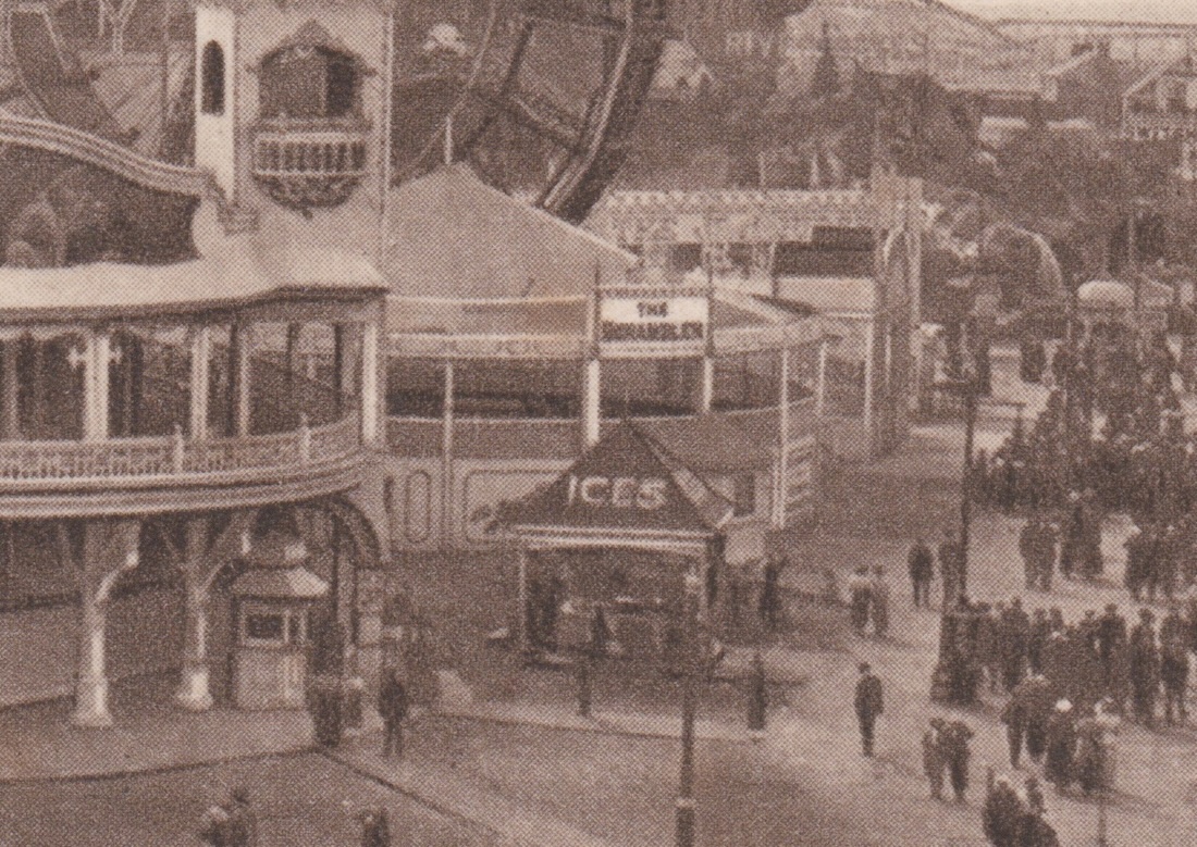 References to this ride or attraction have been found in our research, however little is known about it. In July 1913, the local press stated that … “The finishing touches are being put to a new and wonderful contrivance called the “Scrambler”, which is to mystify and amuse those who patronise it”.