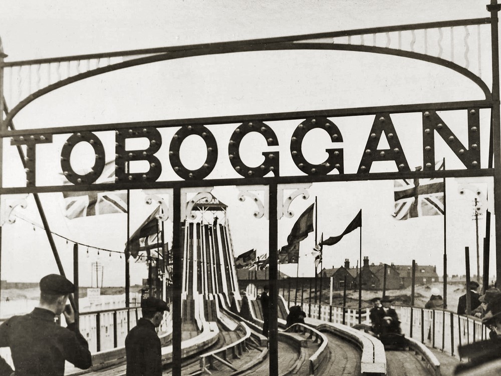 The Toboggan was a new feature for the 1908, opening as part of a slew of new attractions for that year. Wheeled sleds navigated the undulating course, in a manner not too disimilar to the much later Giant Slide.